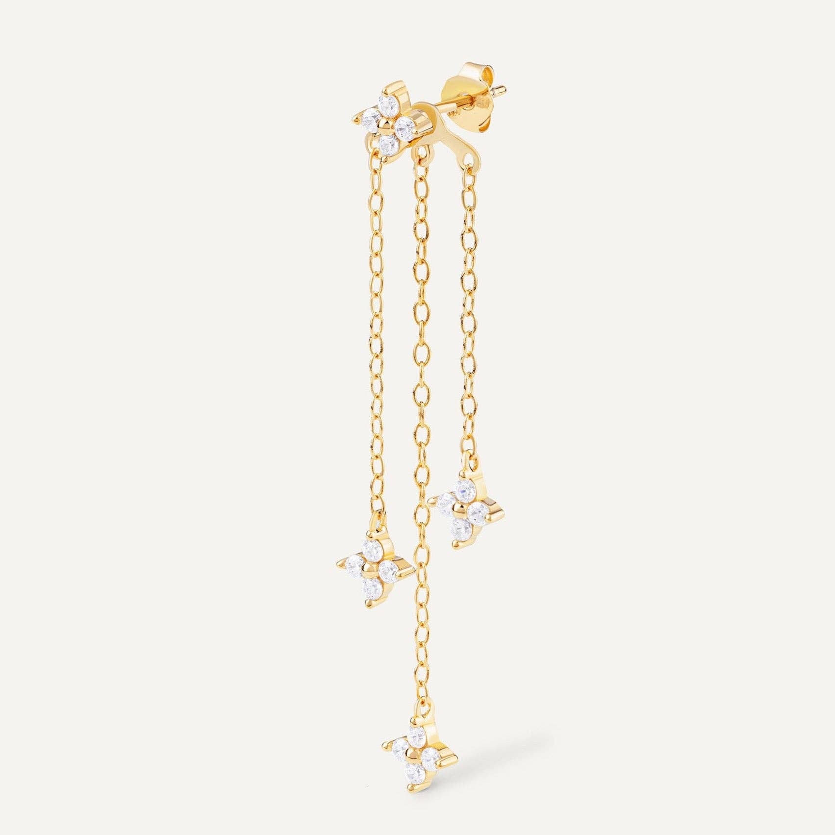 Een gesp met drie fijne kettingen versierd met delicate stenen, voor een lichte en discrete elegantie, perfect voor de lente.