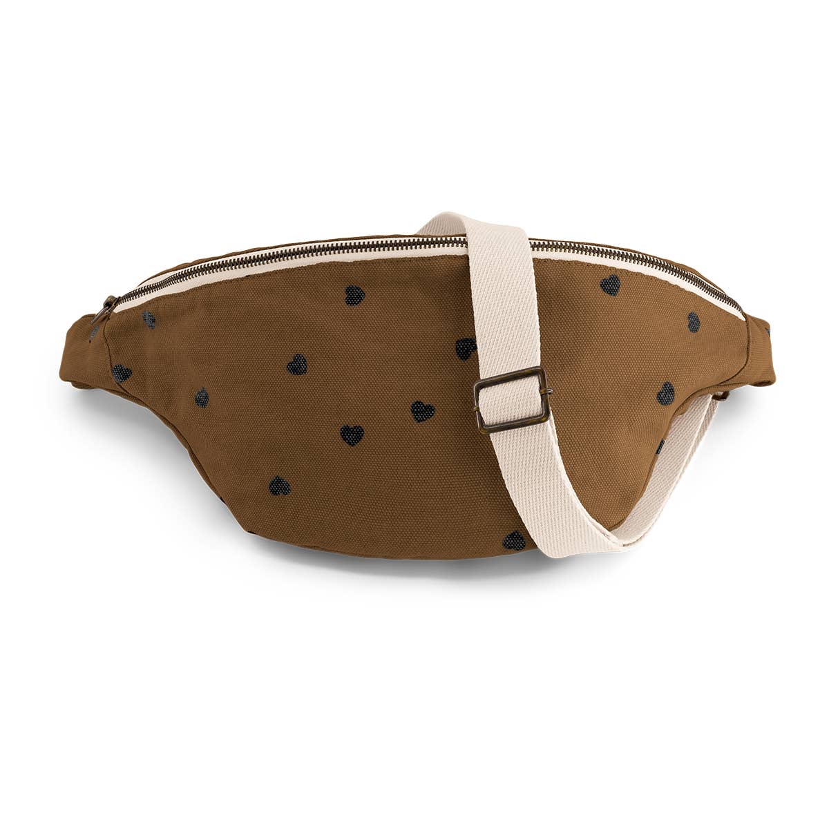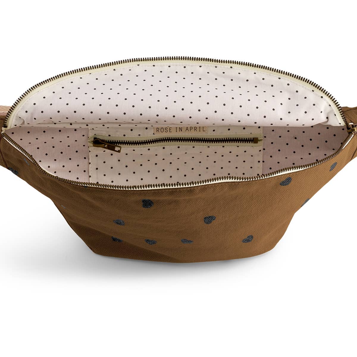 BANANENZAK - BANAAN IN KOMIJNKLEUR ZWARTE HARTPRINT 100% KATOEN DIMENSIE GEMAAKT IN PORTUGAL OEKO TEX GECERTIFICEERD