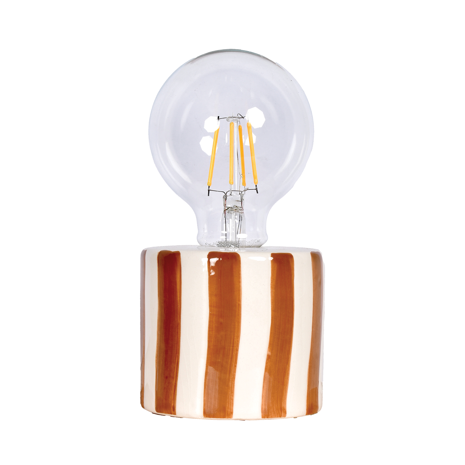 Bruine leddecoratie met strepen, inclusief batterijen, Ø 8,8 cm H 17,5 cm