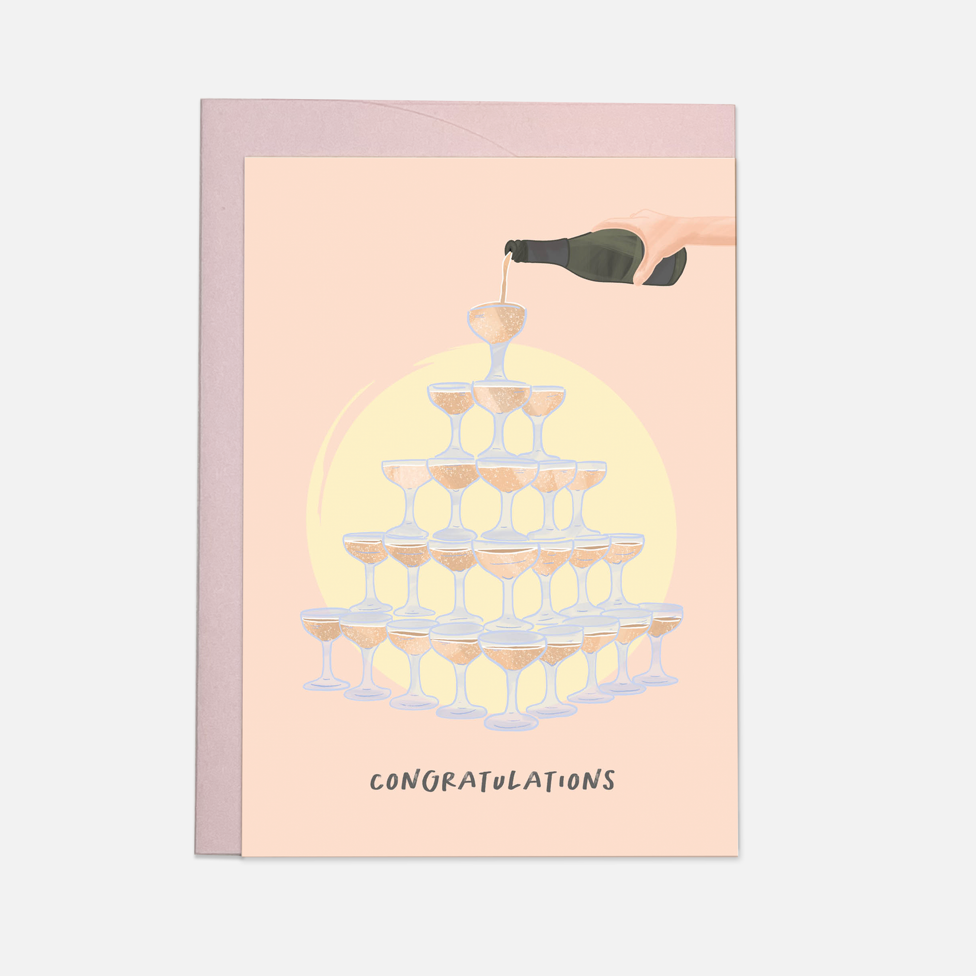 Send your love, friends, family or dog an original greeting card and surprise someone with this ‘Congratulations champagne tower‘ card.