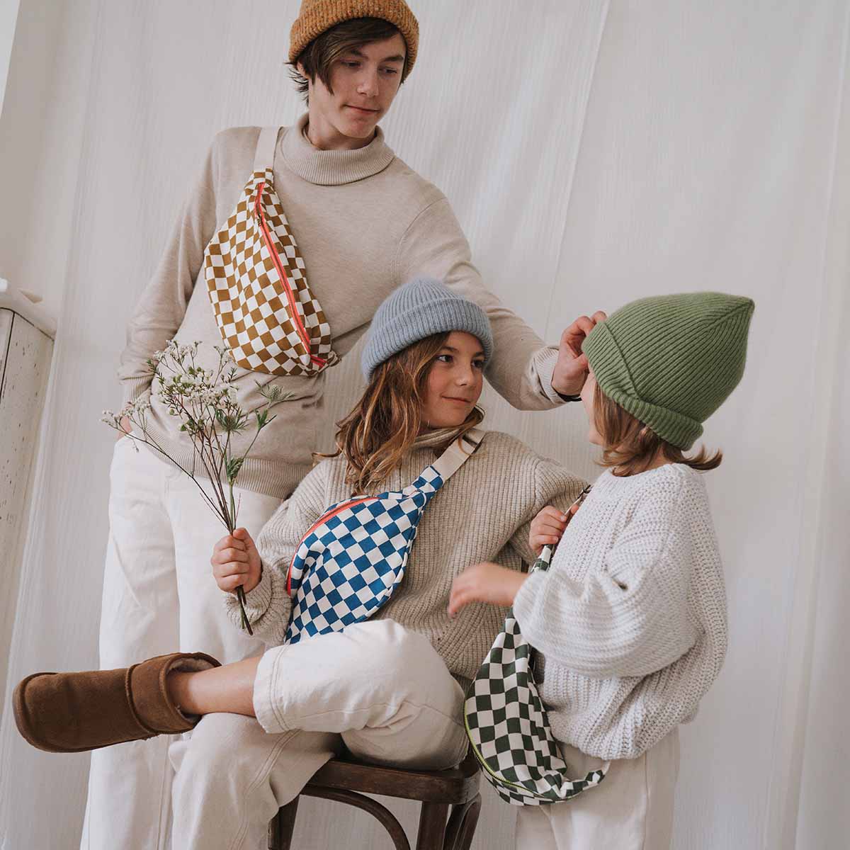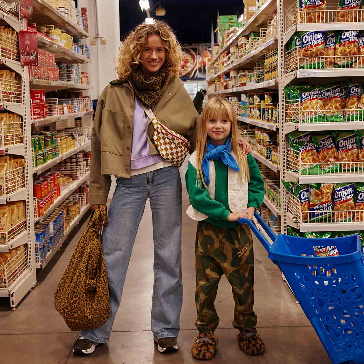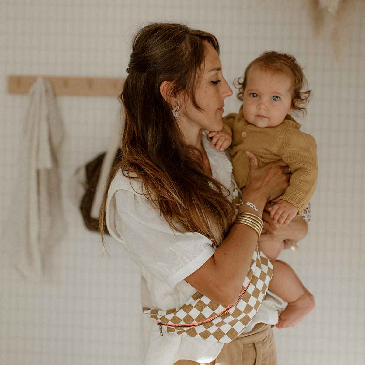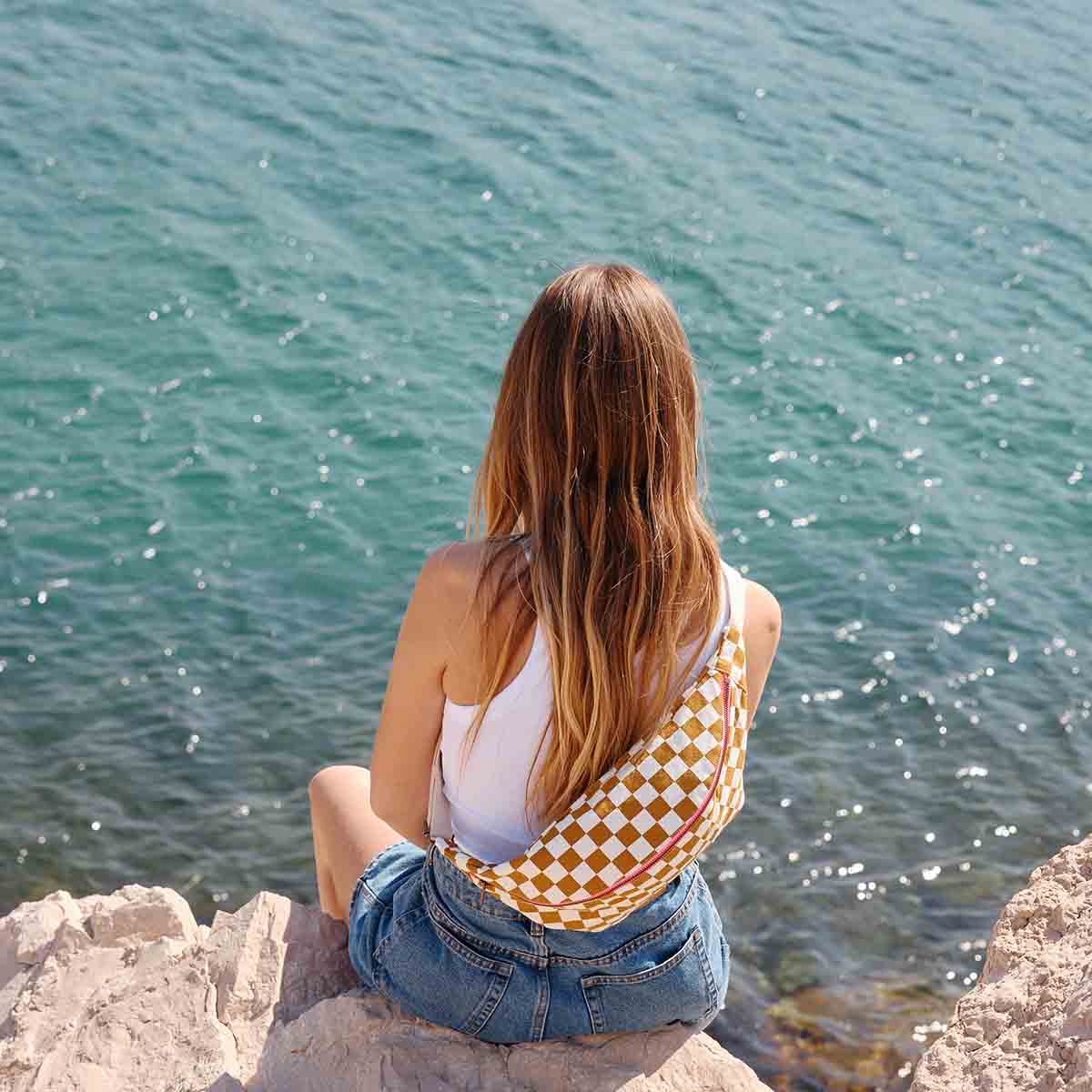 BANANENTAS BEDRUKT KARAMEL DAMBORD 100% KATOEN, MAAT GEMAAKT IN PORTUGAL, OEKO TEX GECERTIFICEERD