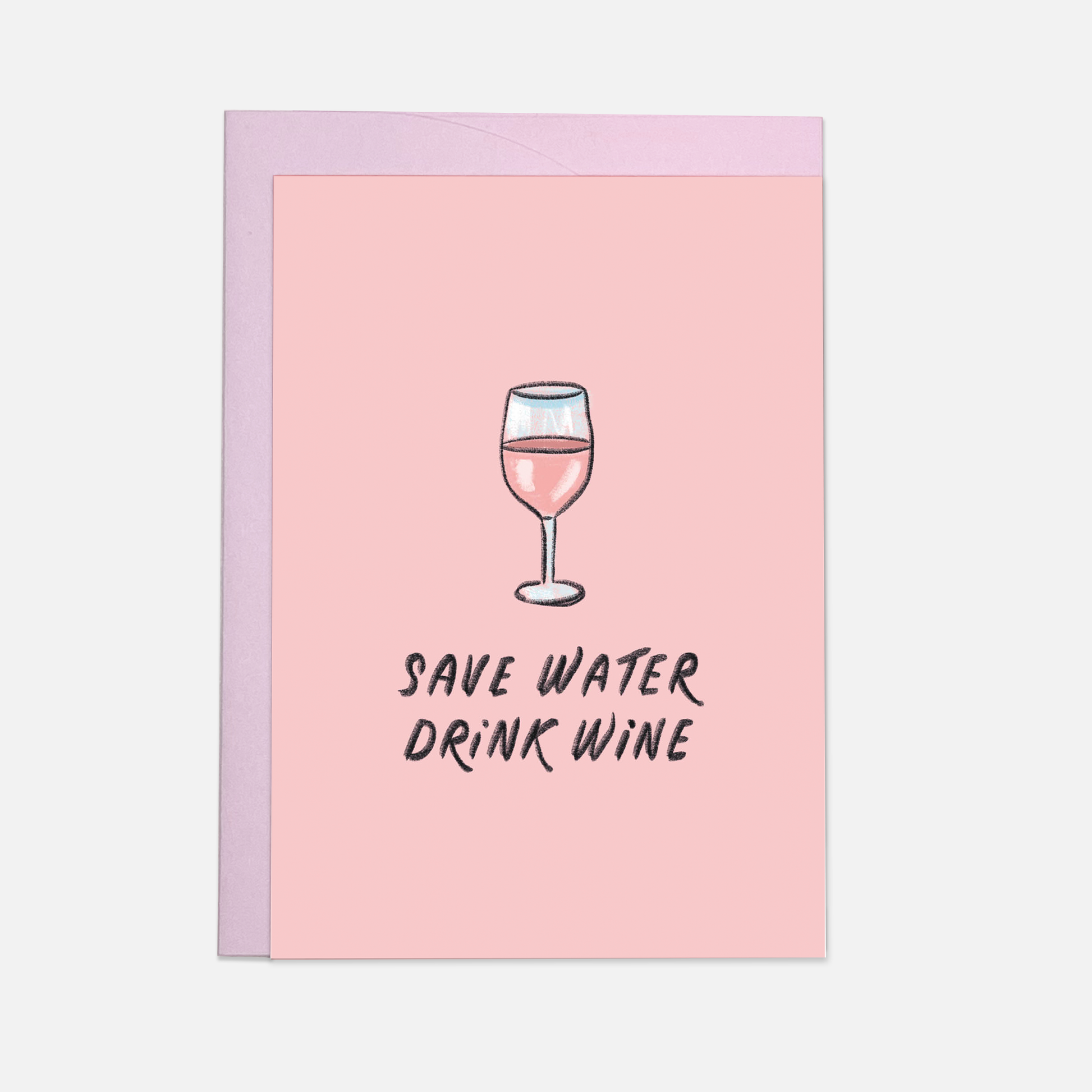 Send your love, friends, family or dog an original greeting card and surprise someone with this ‘Save water, drink wine‘ card.