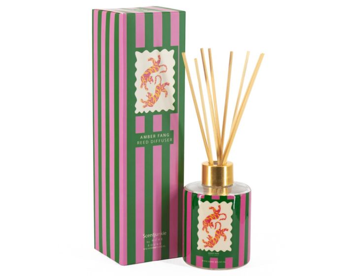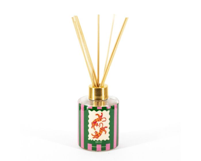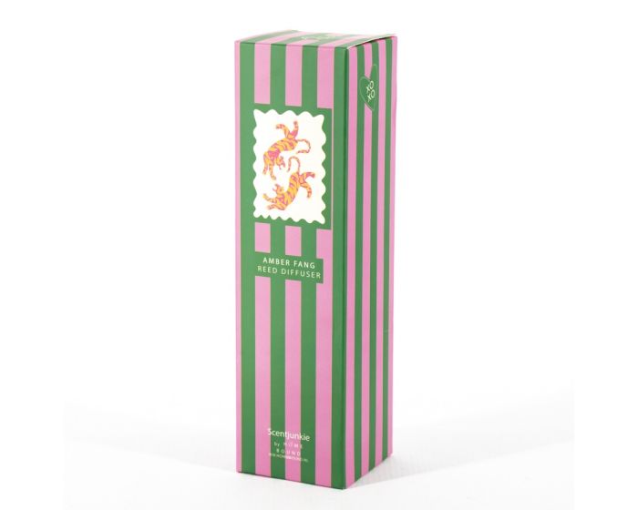 Met de geurstokjes Amber Fang voeg je direct diepte en karakter toe aan je interieur. Deze luxe reed diffuser verspreidt een warme, sensuele geur met een rijke amberachtige basis. De opvallende groen-roze strepen en de speelse illustratie geven dit item een unieke, modieuze uitstraling.