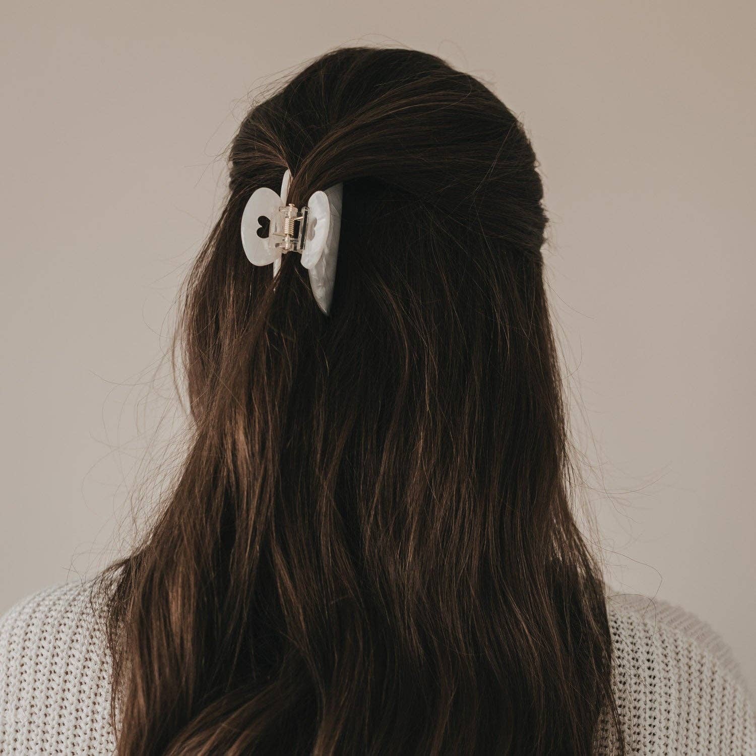 Onze grote haarklem Hart Pearl combineert eenvoudige elegantie met een vleugje romantiek.