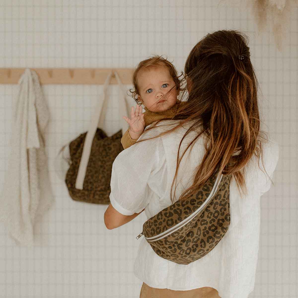 HEUPTASJE - OLIJFKLEURIGE LUIPAARDPRINT, 100% KATOEN, MAAT GEMAAKT IN PORTUGAL, OEKO-TEX GECERTIFICEERD
