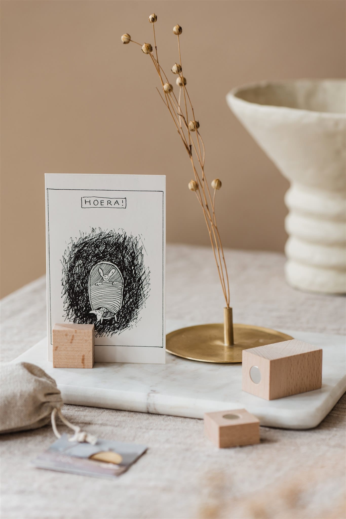 Geef die fijne kaart, dat mooie kunstwerkje of een dierbare foto een mooie plek in de massieve beukenhouten houder Hold it klik. Een houvast voor dat ene aandenken waar jij vrolijk van wordt. Bepaal zelf waar je het houten vierkantje klikt in jouw foto of kaart.