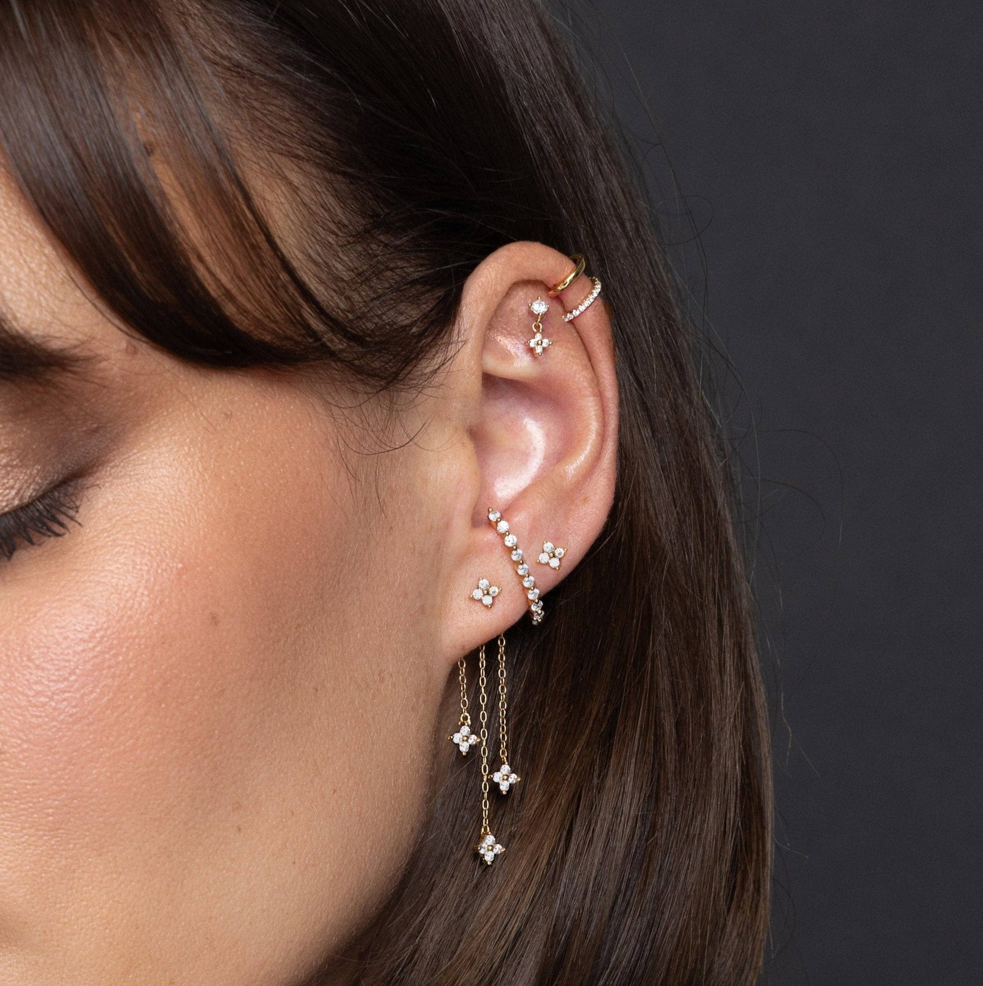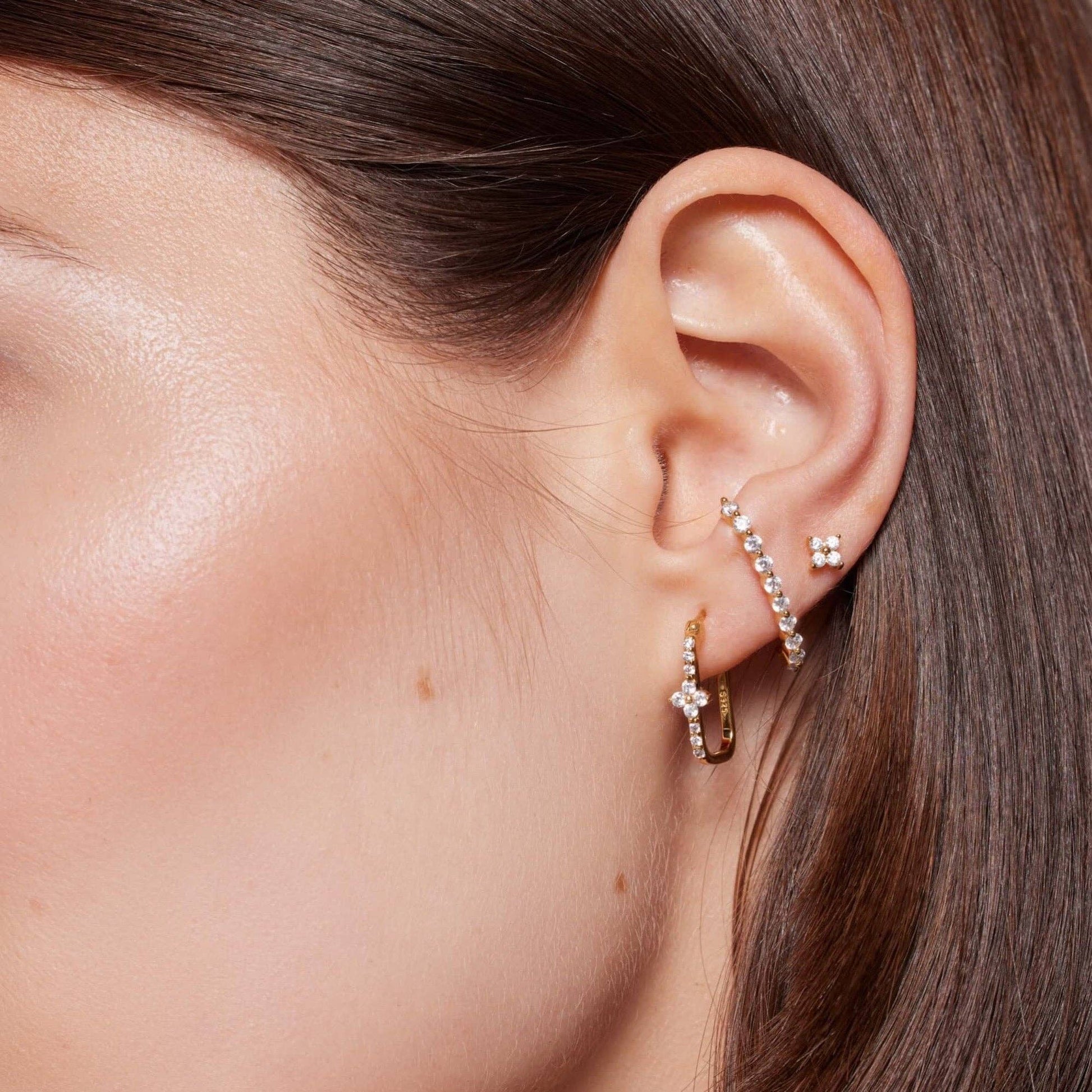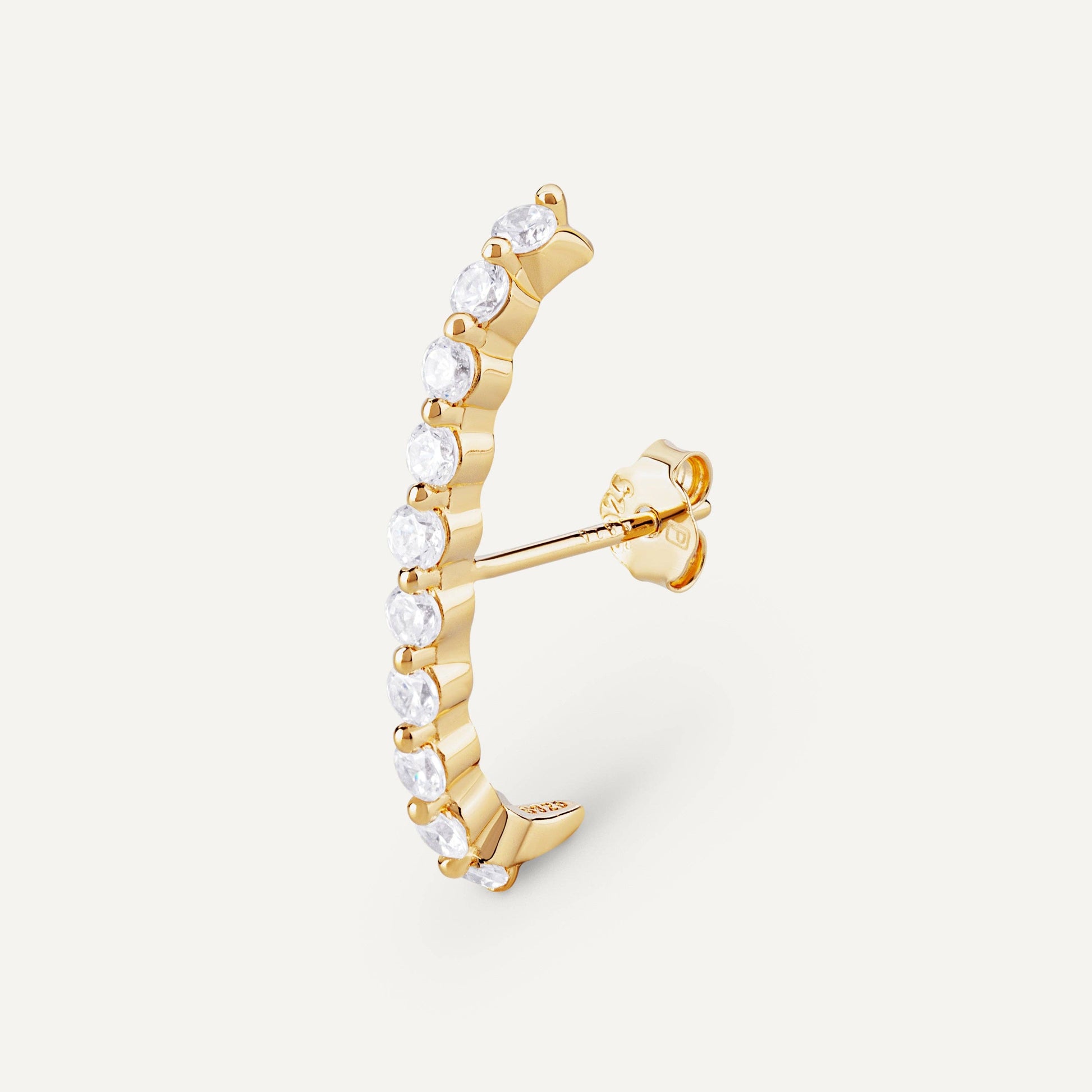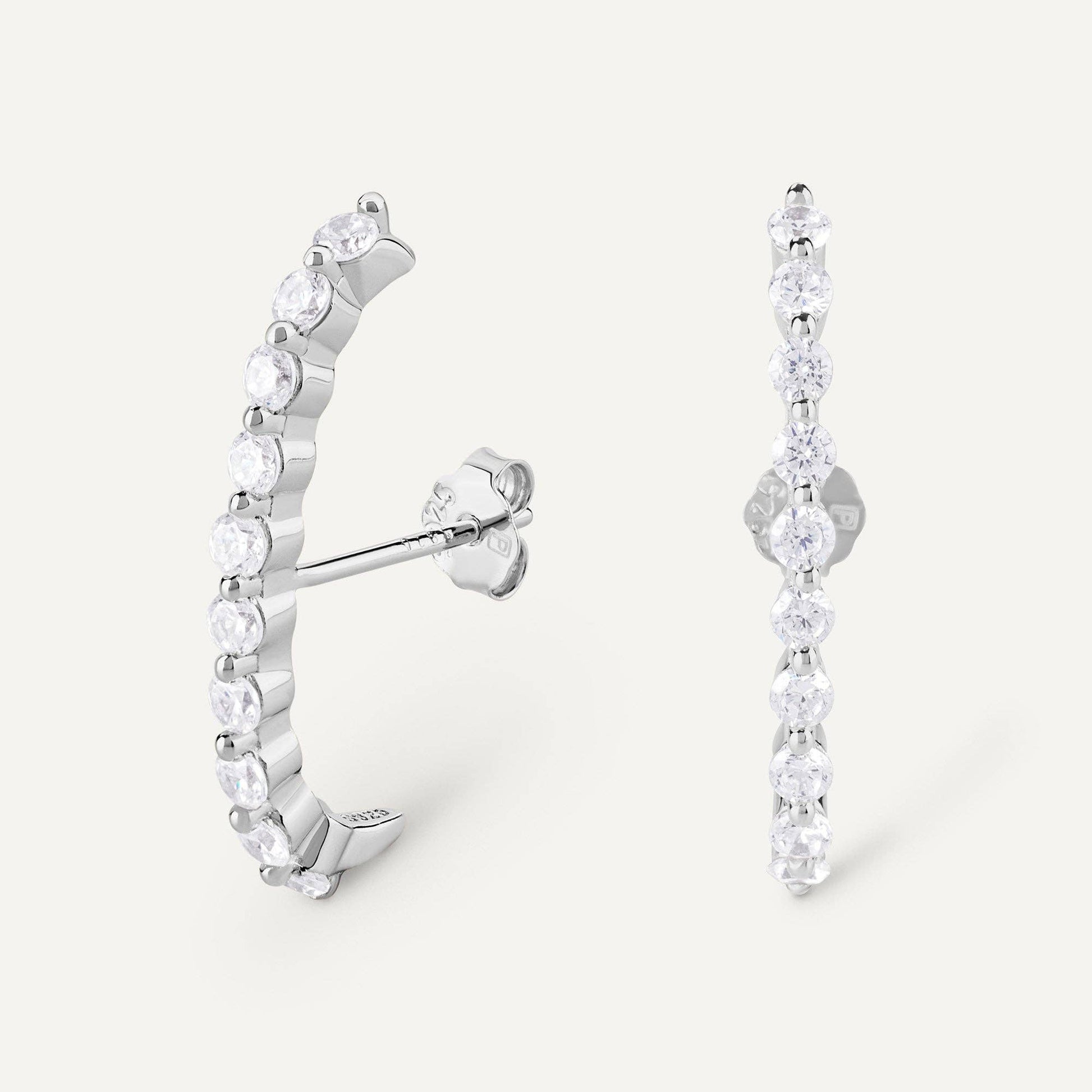 Deze minimalistische gespset met zirkoniumstenen, verticaal gedragen op de lob, voegt het perfecte vleugje stijl toe voor moeiteloze elegantie.