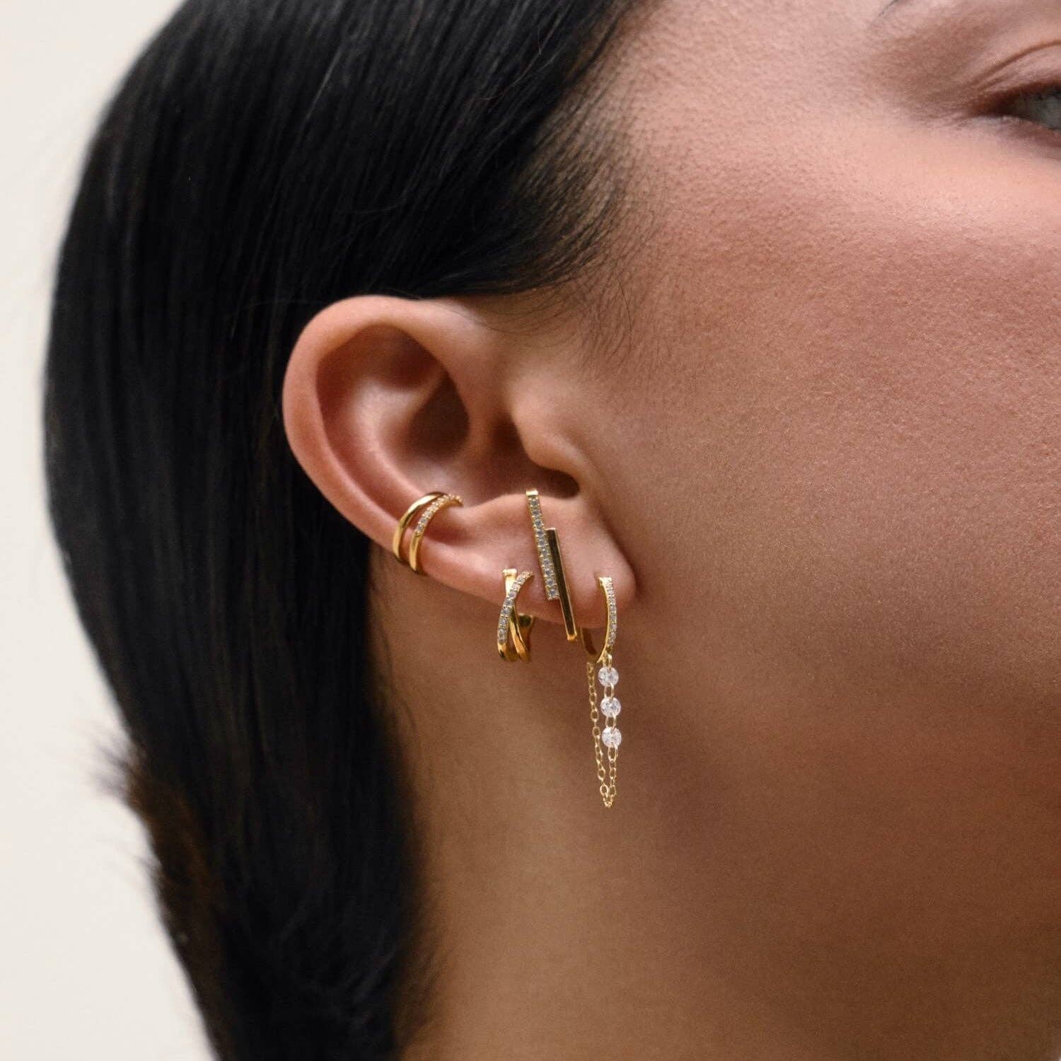 Minimalisme en glans: een klim-effect oorbel, perfect voor een gedurfde look.