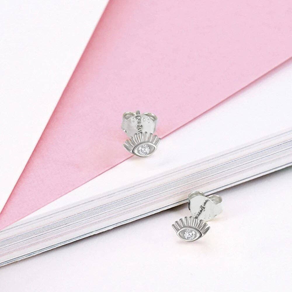 Maak je stijl en aanwezigheid bekend met deze „Captured In Your Eyes” oorbellen! Deze studs zijn gemaakt van strak sterling zilver en voorzien van kleine oogjes met een sprankelende witte zirkonia in het midden, zodat je er zeker van kunt zijn dat je overal aandacht trekt. Opvallend en stijlvol - de perfecte combinatie!