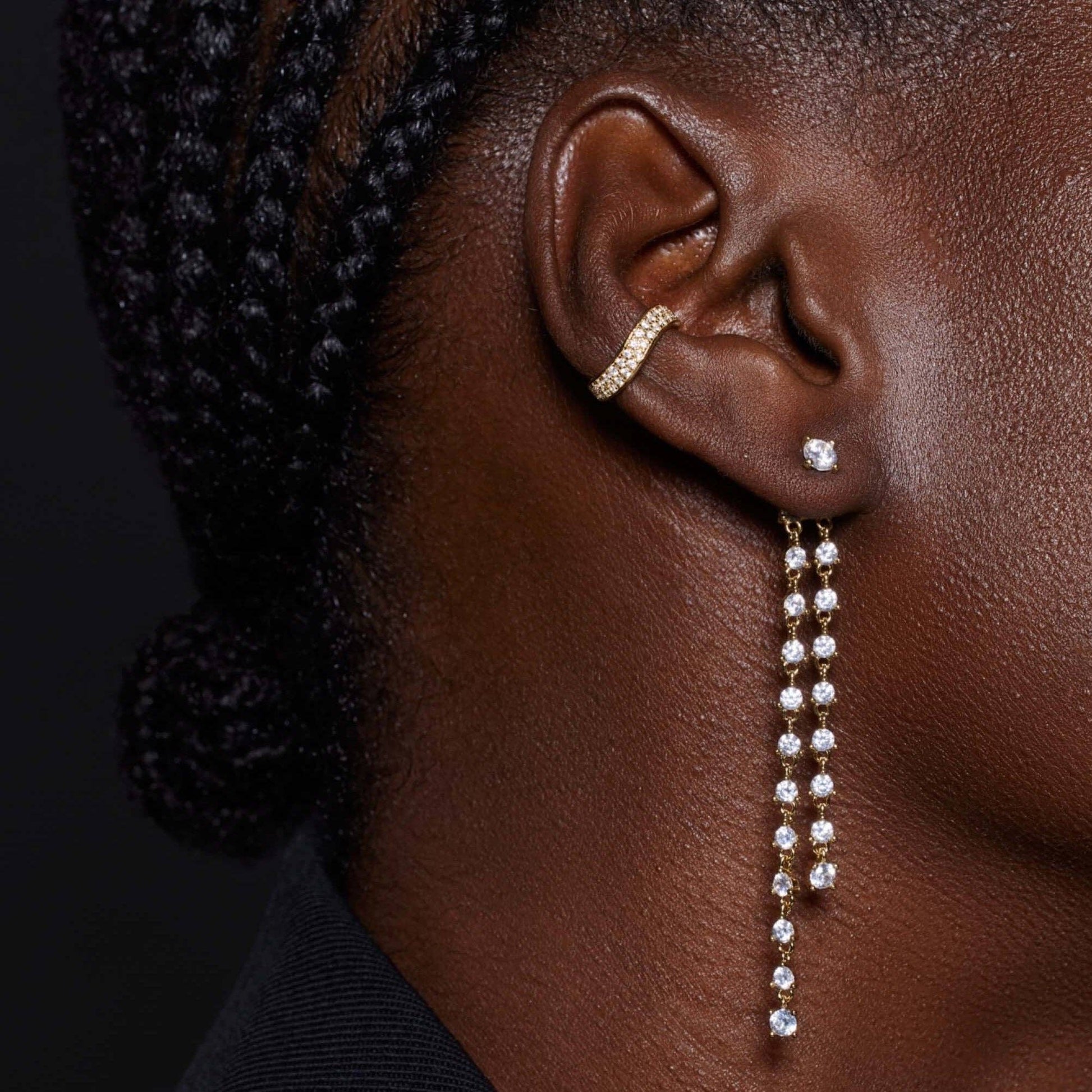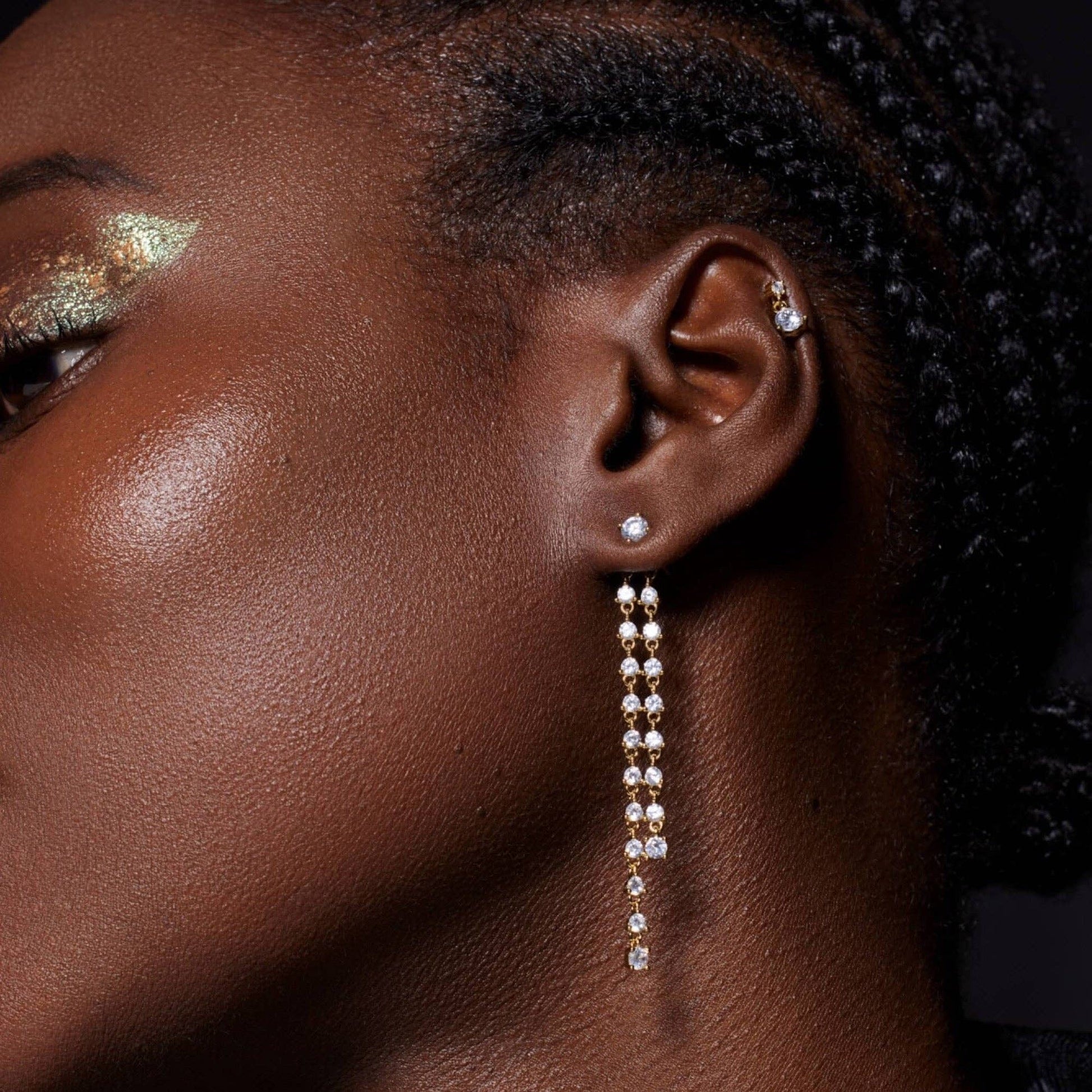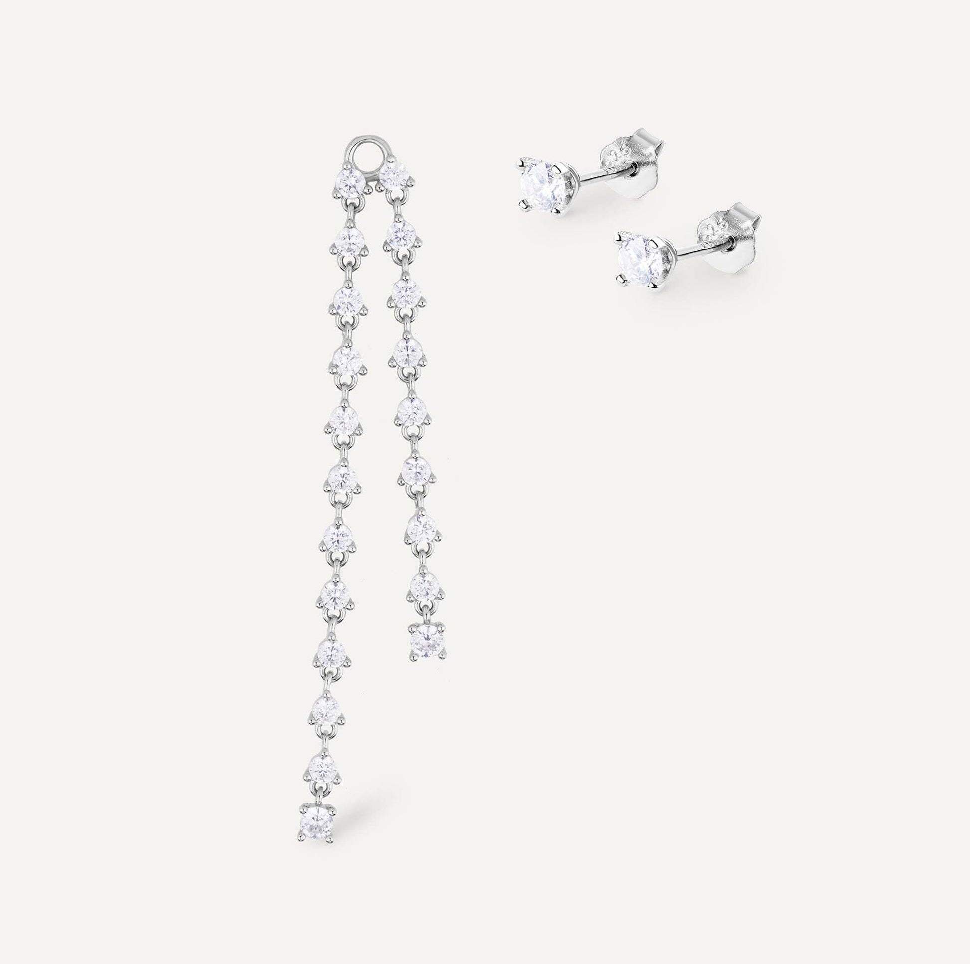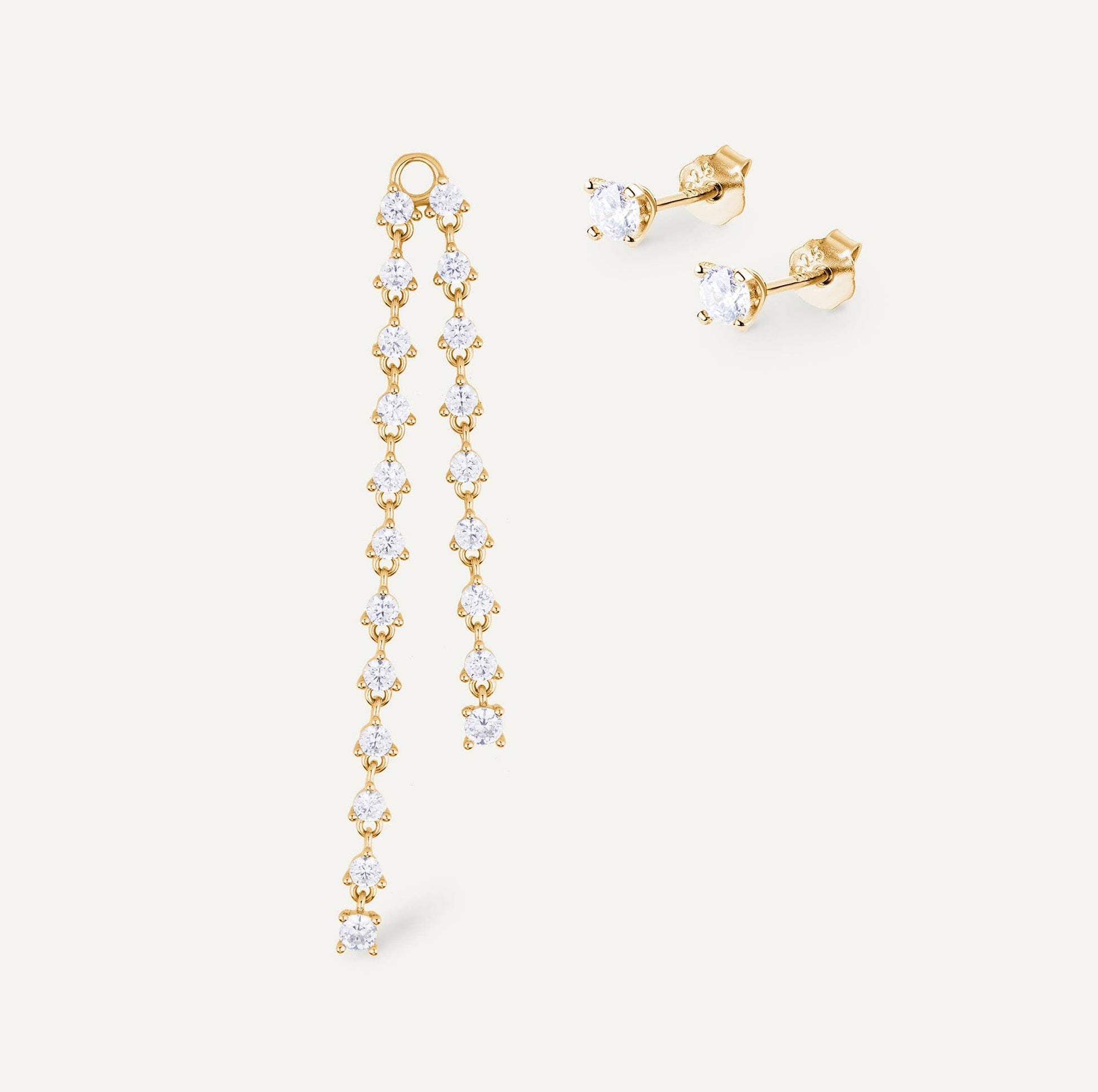 Deze COME oorbellen, versierd met zirkoniumstenen en samengesteld uit twee kettingen, zorgen voor een asymmetrische, zeer originele stijl.