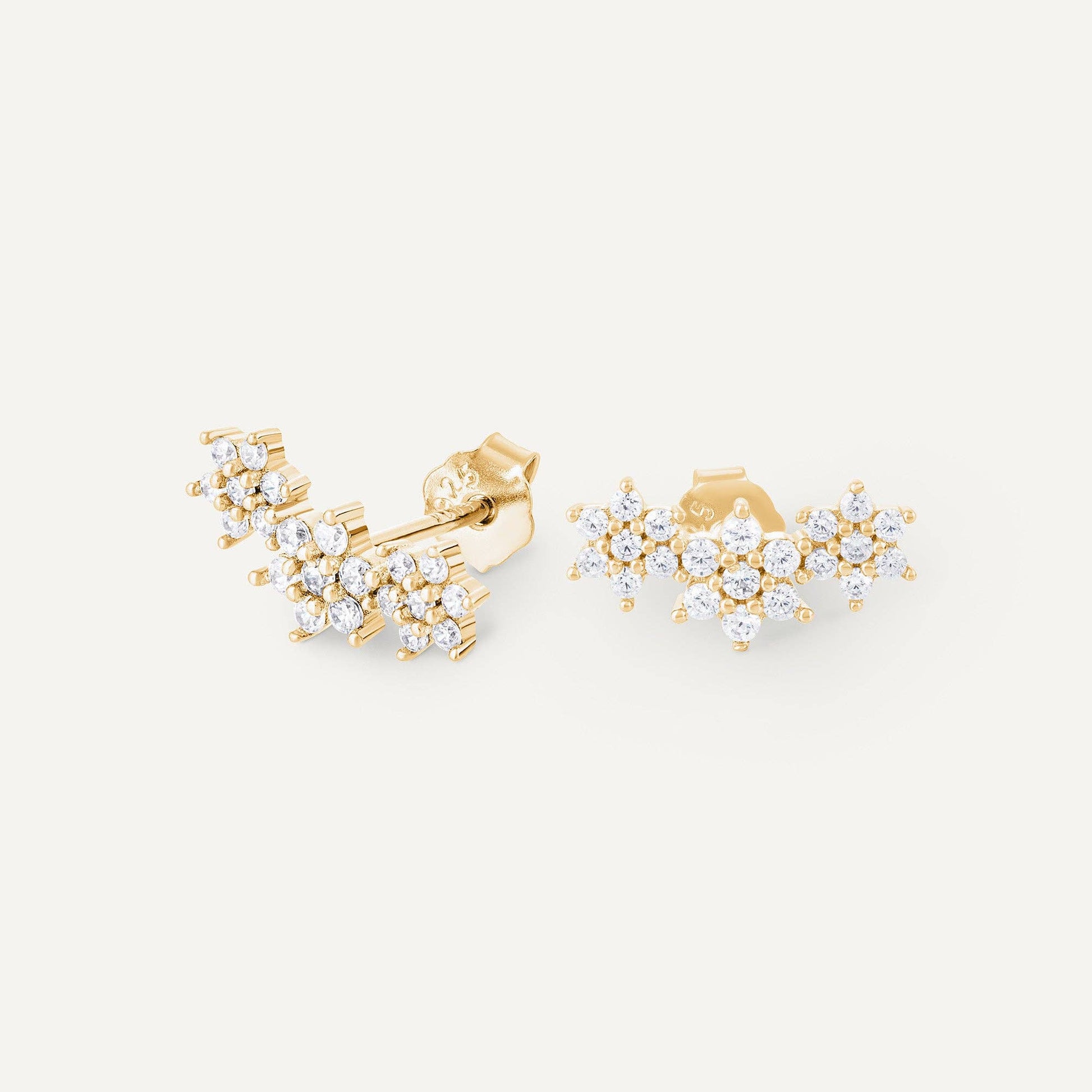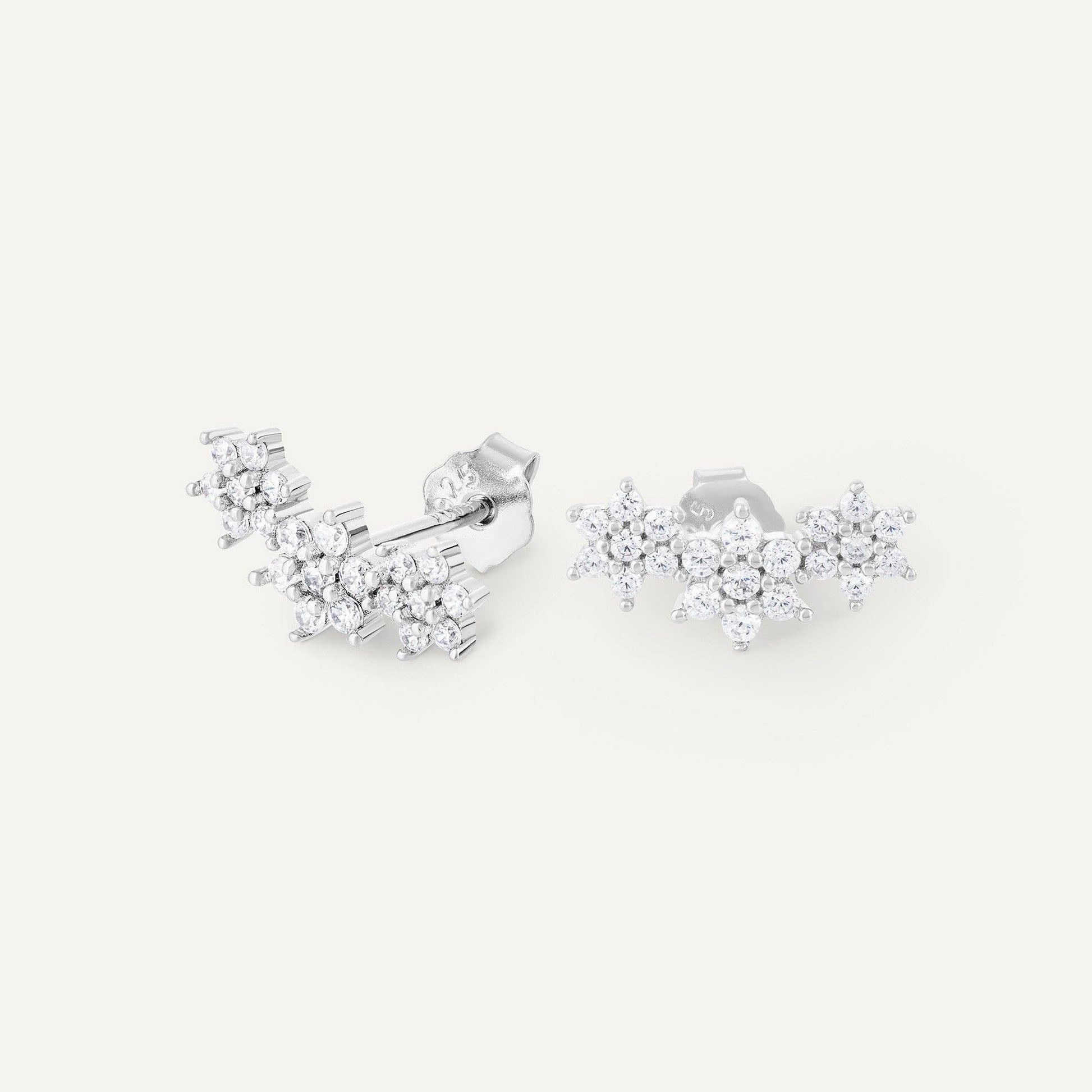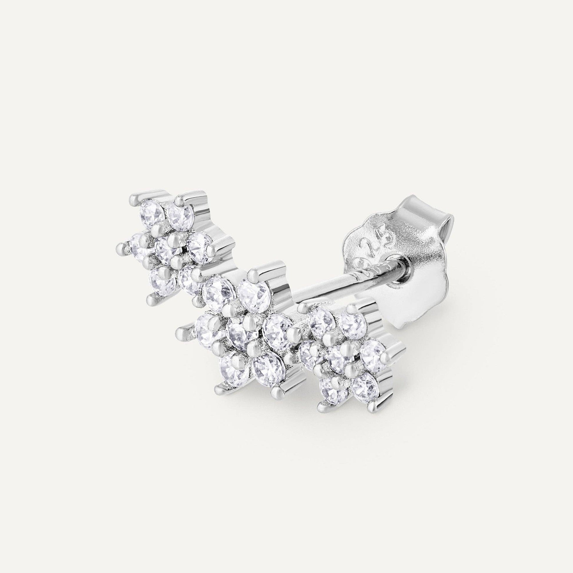 De bloemenoorbellen van PALMA worden verhoogd gedragen in de vorm van een boog, bezet met delicate zirkoniumkristallen.