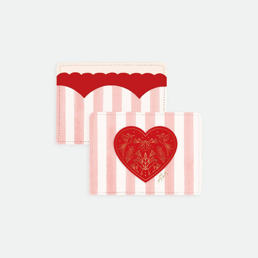 Gemaakt van premium PU-leer, met delicate roze strepen en een gedurfd rood hart met gouden details β een ontwerp dat zowel tijdloos als vrolijk aanvoelt. Compact en praktisch, het is gemaakt om gemakkelijk in elke tas of zak te passen.