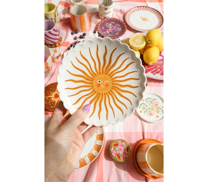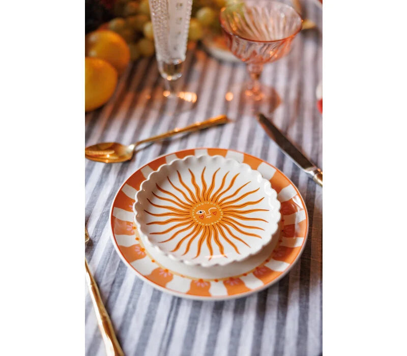 Dit stralende bordje met zon in het midden, brengt een warme en vrolijke sfeer op tafel!