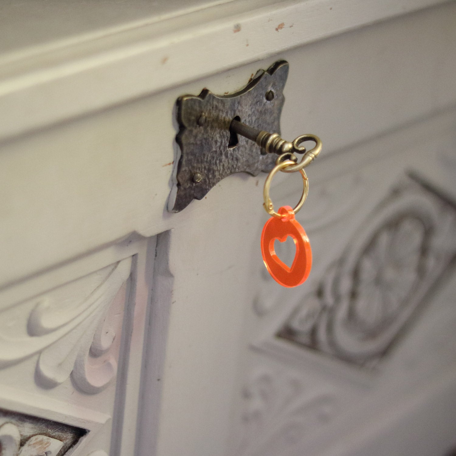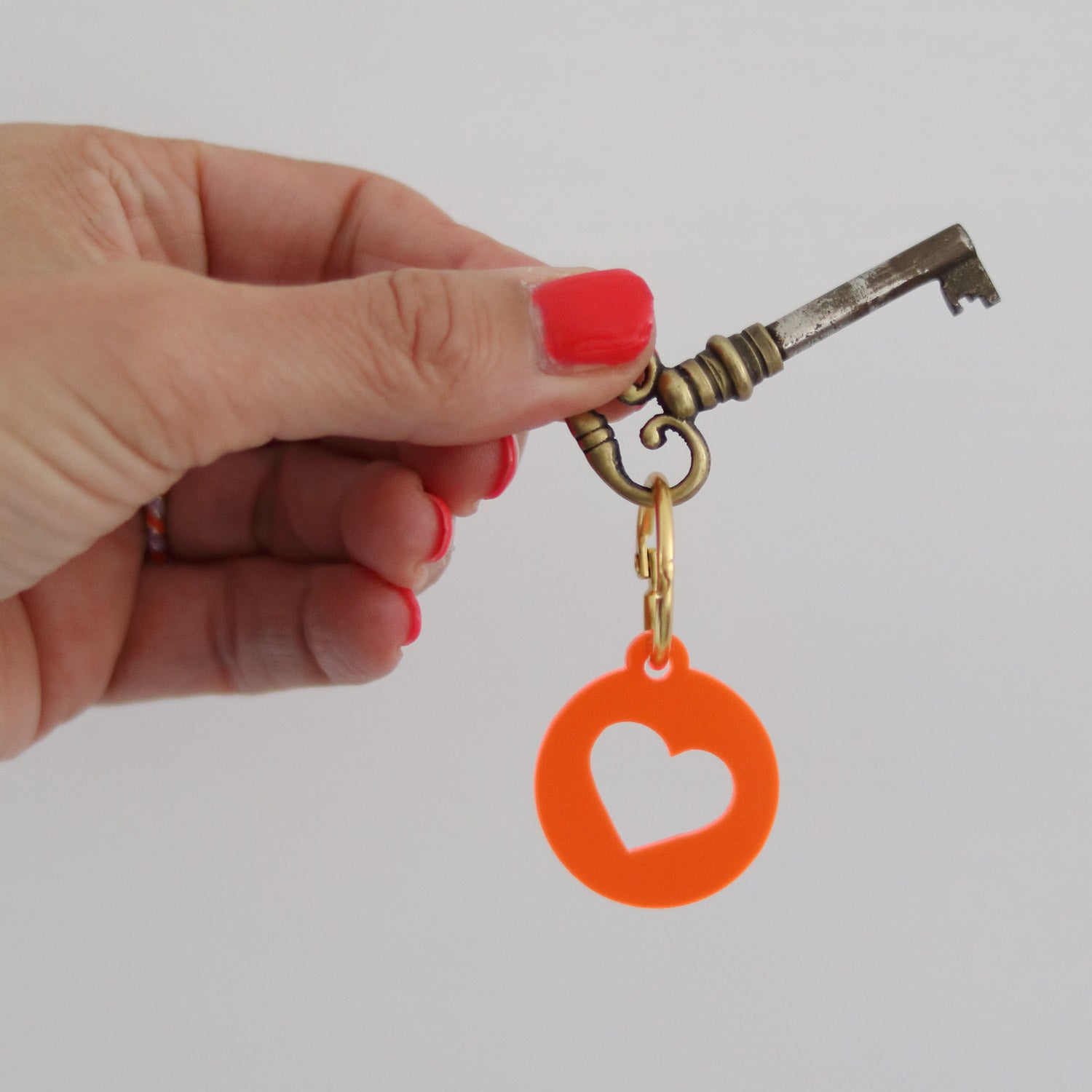 Met deze troost sleutelhanger stuur je een lieve glimlach naar iemand bij wie alles even tegen zit. De troost sleutelhangers zijn ø 3cm groot. Ze zijn gemaakt van fluor oranje acrylaat en voorzien van een gouden ringetje