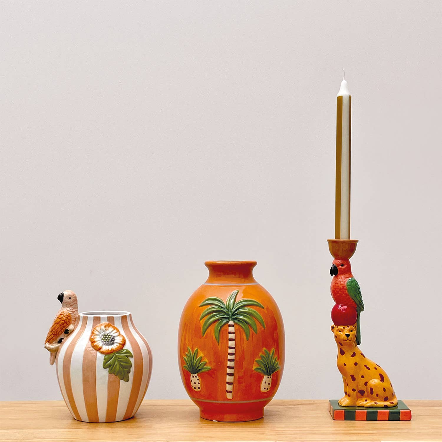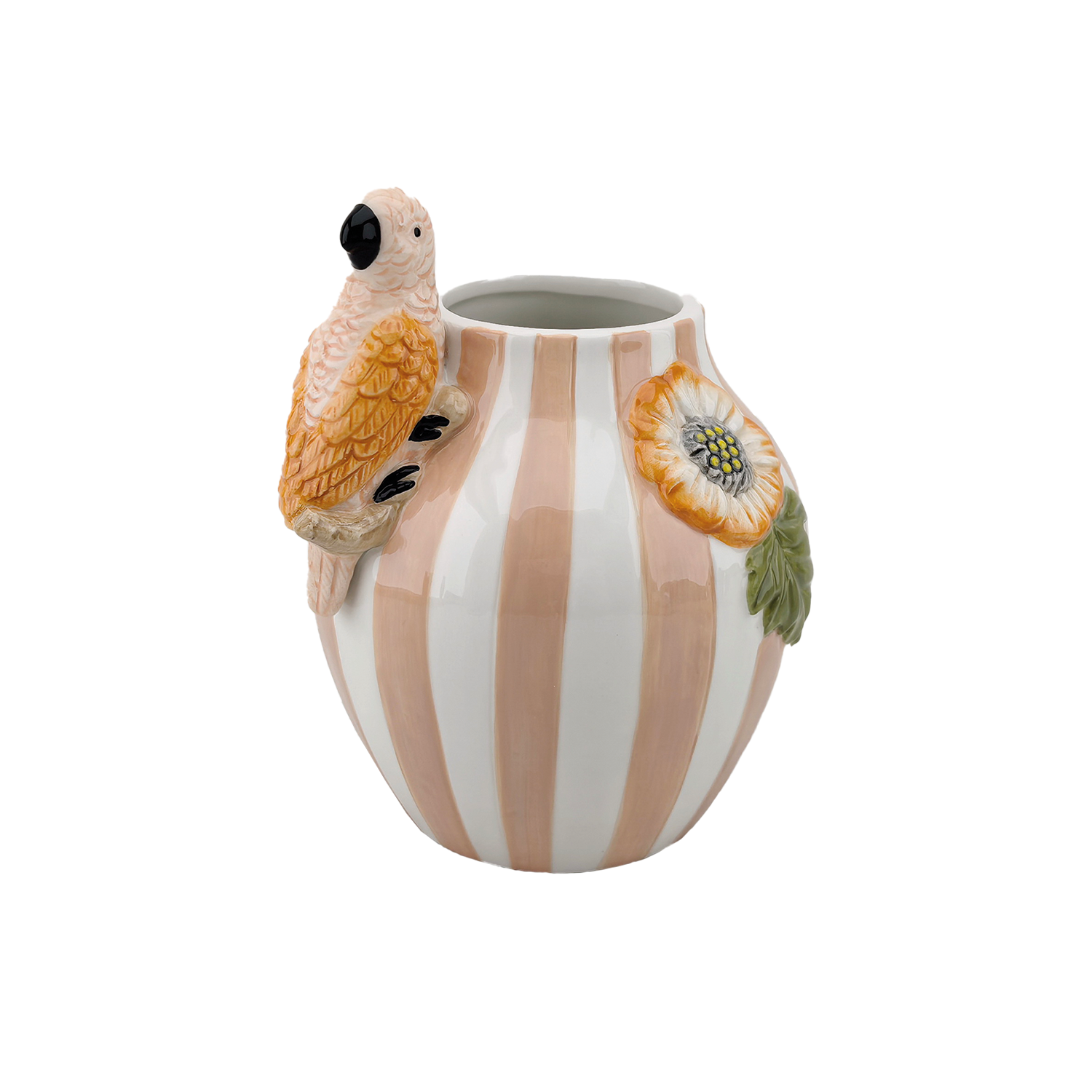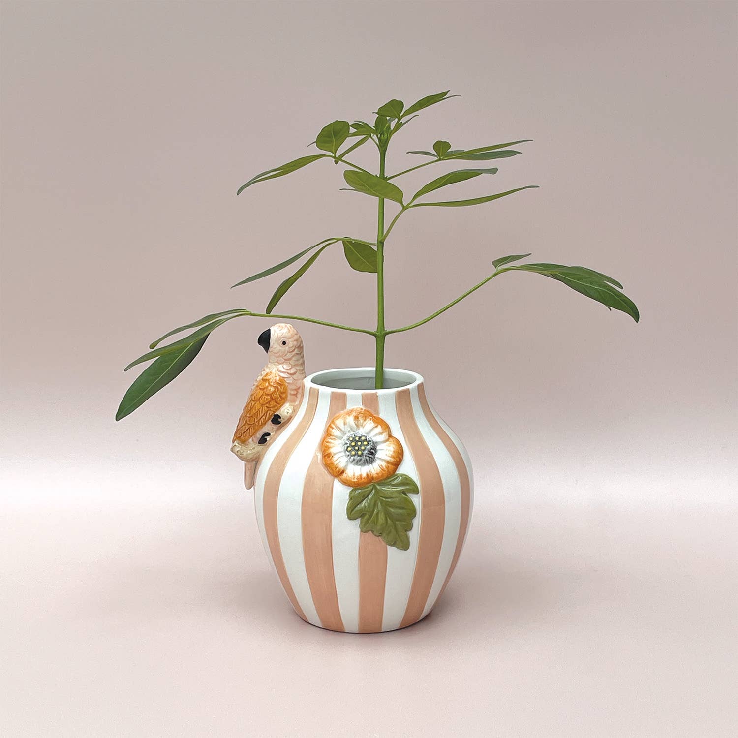 Vaas streep vogel roze L17 B14 H18,2cm