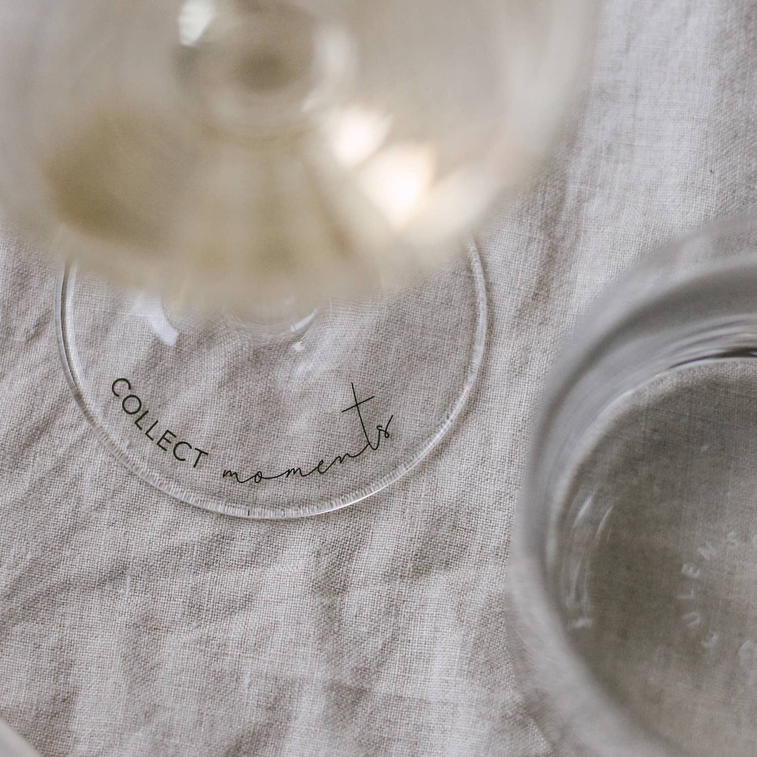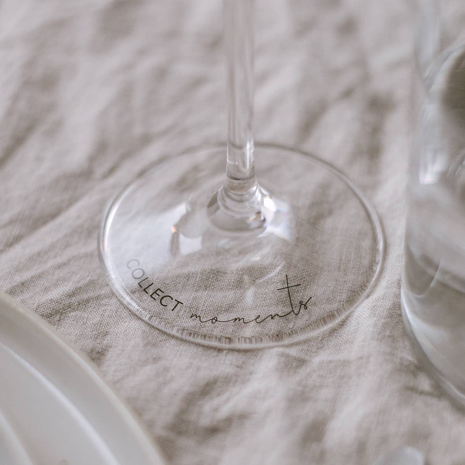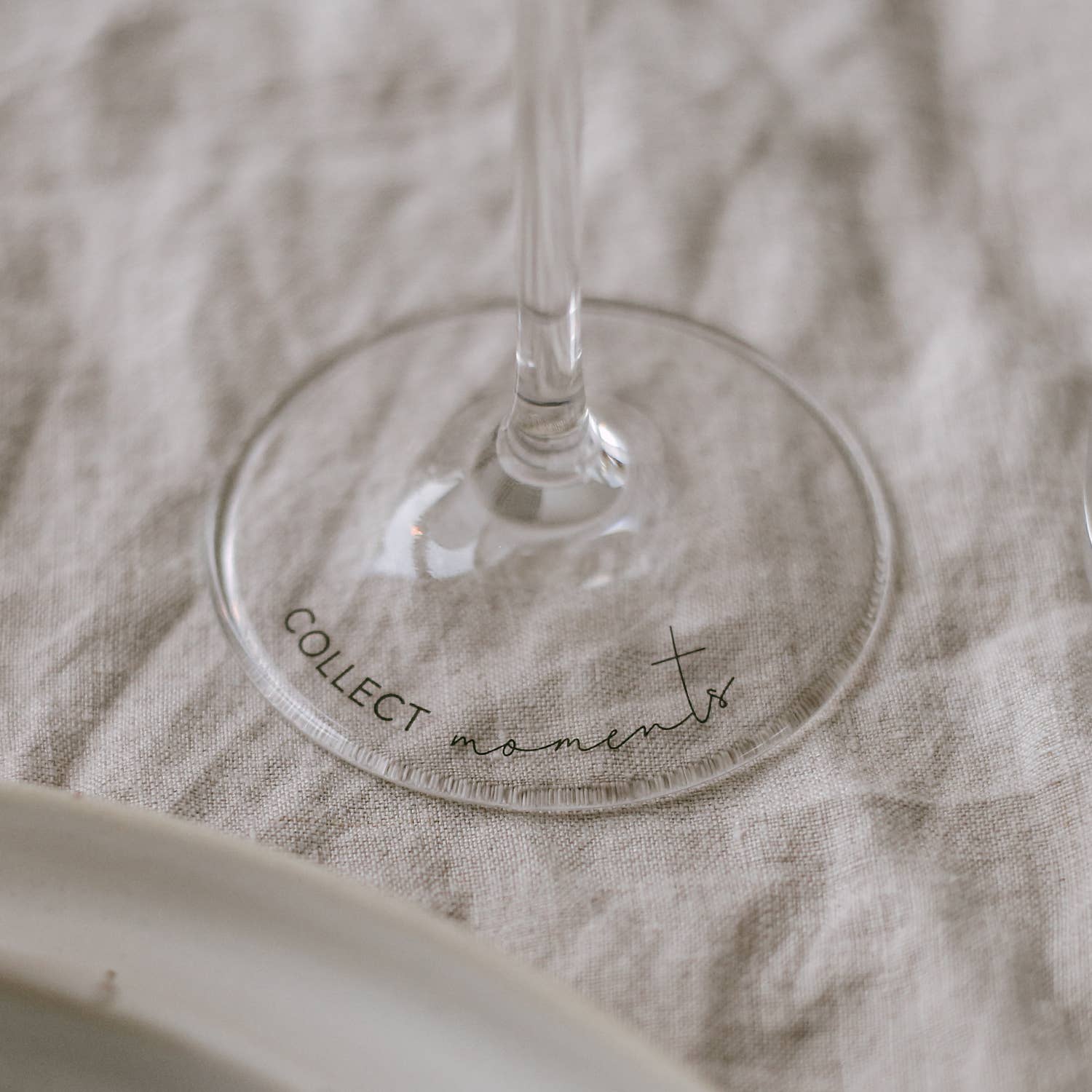 Ontdek een prachtig wijnglas met zwarte print op de onderkant van het glas. Onze nieuwe wijnglazen zijn dunwandig, waardoor ze licht en toch extreem stabiel zijn. Dat is precies wat ze zo bijzonder maakt in combinatie met het minimalistische ontwerp. Ze hebben een inhoud van ca. 390 ml en zijn daarmee een absolute allrounder - of het nu gaat om witte wijn, rode wijn of rosé. Het glas is versierd met de handgeschreven slogan „Collect Moments” op de bodem van de wijn, zodat het subtiel in het oog springt wanneer het wijnglas aan tafel wordt gedecoreerd en een glimlach op het gezicht van elke gast tovert.